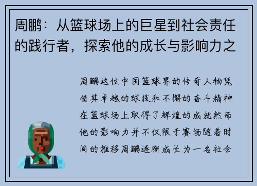 姚明,这位曾经的篮球巨星,如今已成为阳光下的奋斗者。他不仅在篮球场上创造了辉煌的成就,也在退役后积极投身于社会公益、体育发展等领域,成为许多人心中的榜样。在这篇文章中,我们将从姚明的成长历程、坚持不懈的奋斗精神、多元化的发展方向以及对社会的贡献四个方面来详细探讨“晒黑的姚明”这一主题,展现他从一个运动员到一位公众人物、社会活动家的蜕变过程。通过具体事例和深度分析,我们希望读者能够更加全面地理解姚明...